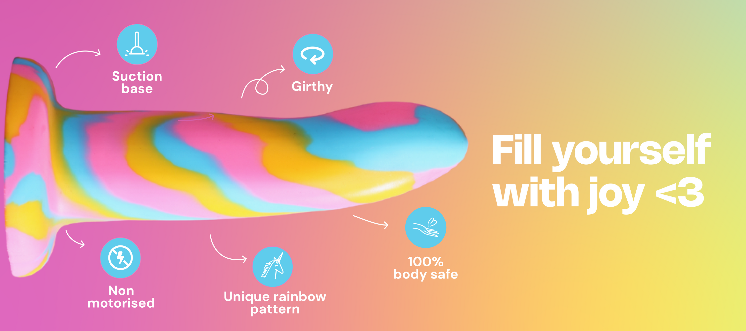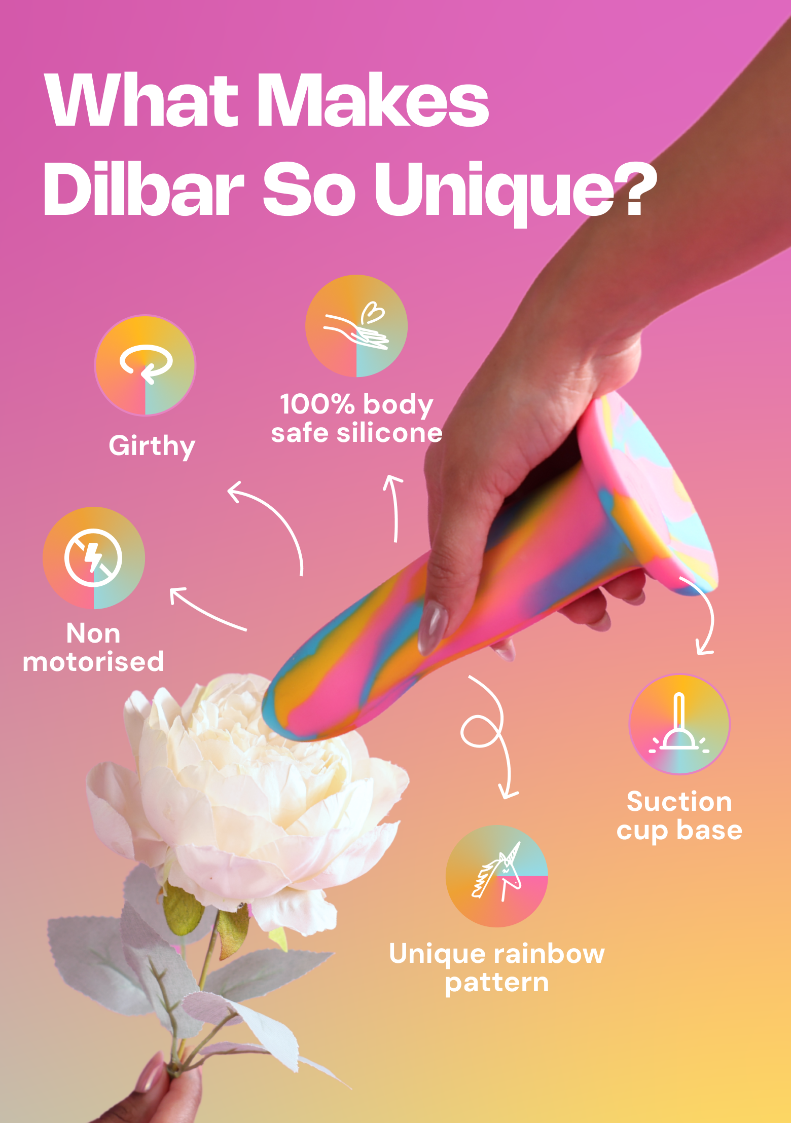 Dilbar is a gorgeous, girthy non motorised rainbow dil (do) with a suction base! Here to fill you with joy and open your third eye ;) You can lie b...