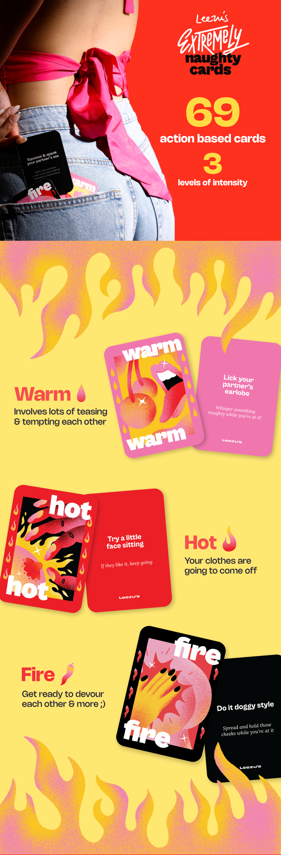 Lovers, you’re not ready for Leezu’s Extremely Naughty Cards. Trust us, it’s the naughtiest card game on the planet—clothes will come off, hearts will race, and legs? They’ll be shaking.